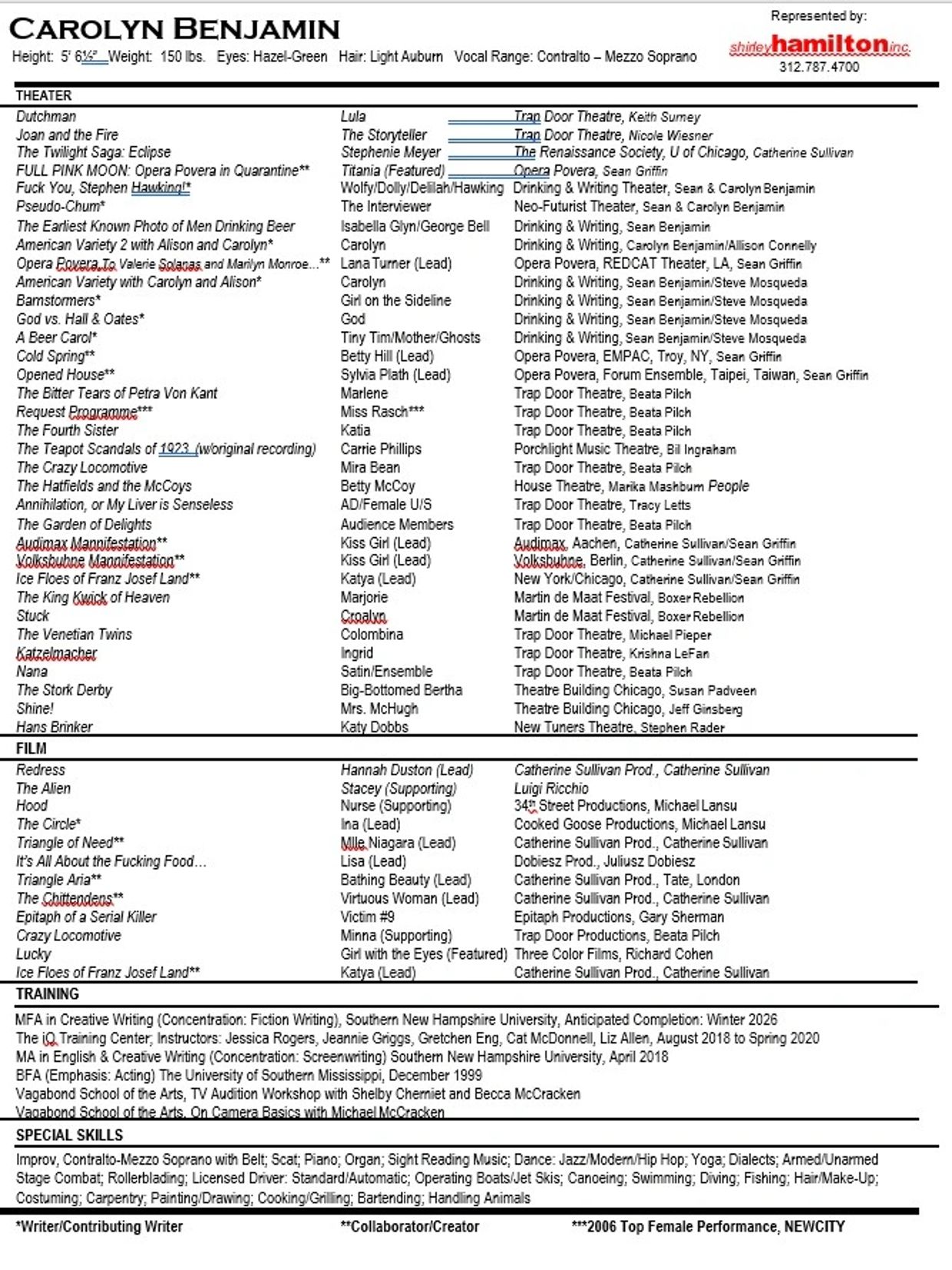 Actor, Performer, Musician, Playwright, Poet, Writer, Mother